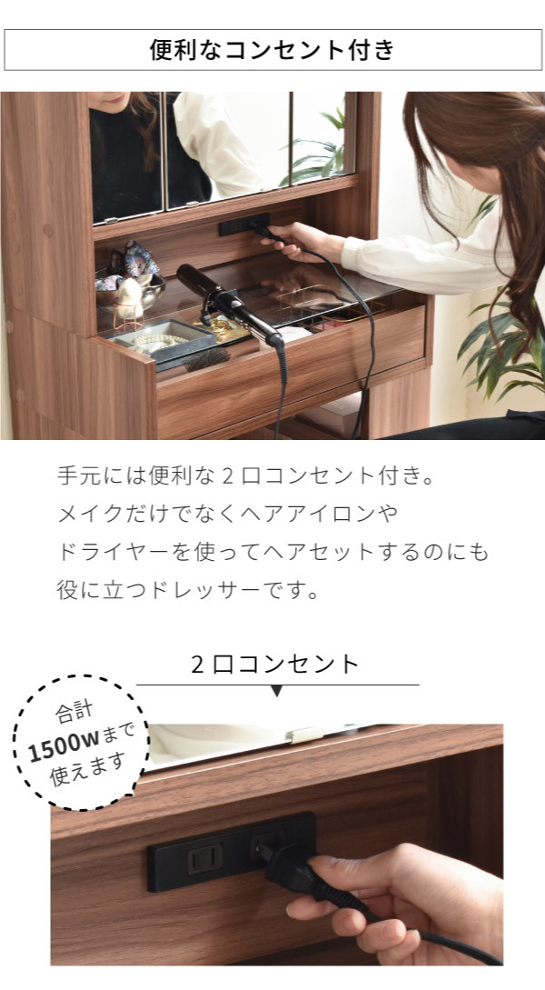 ・合計1500Wの2口コンセント付き(コード長さ196cm)