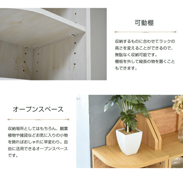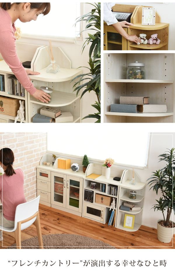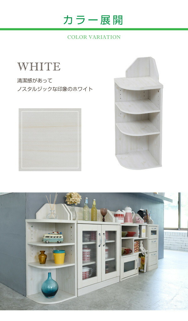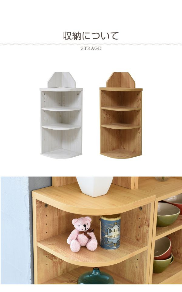 カウンター下収納 コーナーラック カントリーデザイン 三角ラック 3段 角が丸い ラック 高さ80 カウンター
