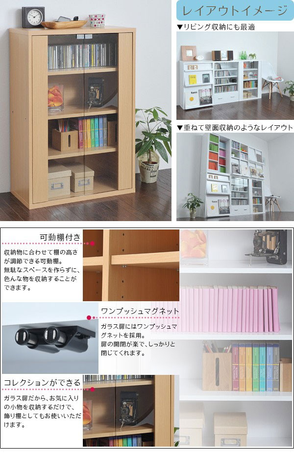 棚 ラック 6BOXシリーズ ガラス扉(fr-046) ホワイト