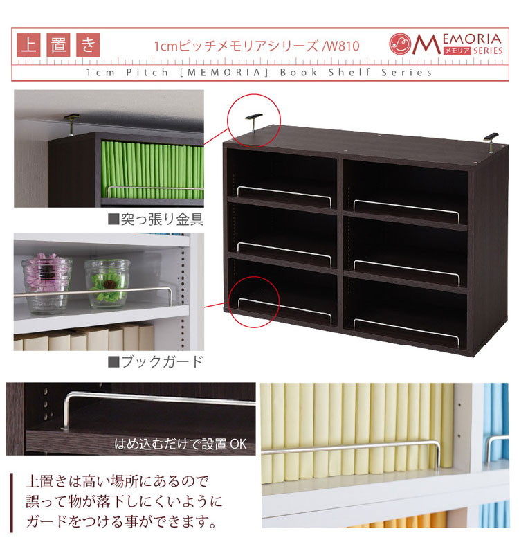 MEMORIA 本棚 薄型 オープン書棚+上置き 幅81 棚板が1cmピッチで調整できる メモリアシリーズ ダークブラウン
