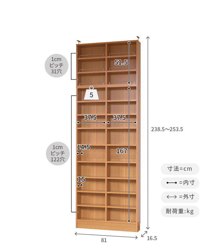 幅81.0×奥行16.5×高さ238.5~253.5cm