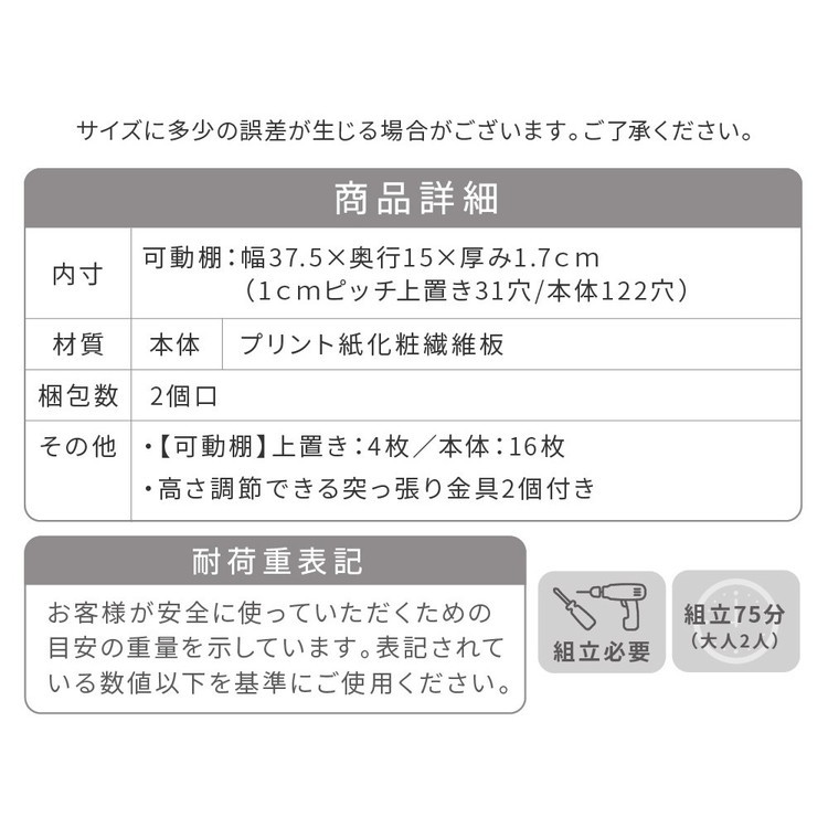(可動棚)幅37.5×奥行15.0×厚み1.7cm(1cmピッチ上下各61穴)