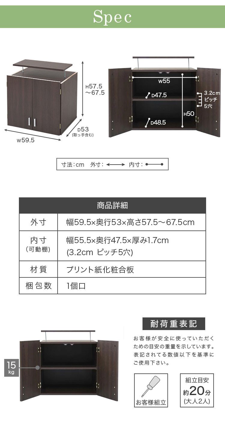 [内寸]:(扉内)幅55×奥行48.5×高さ50cm