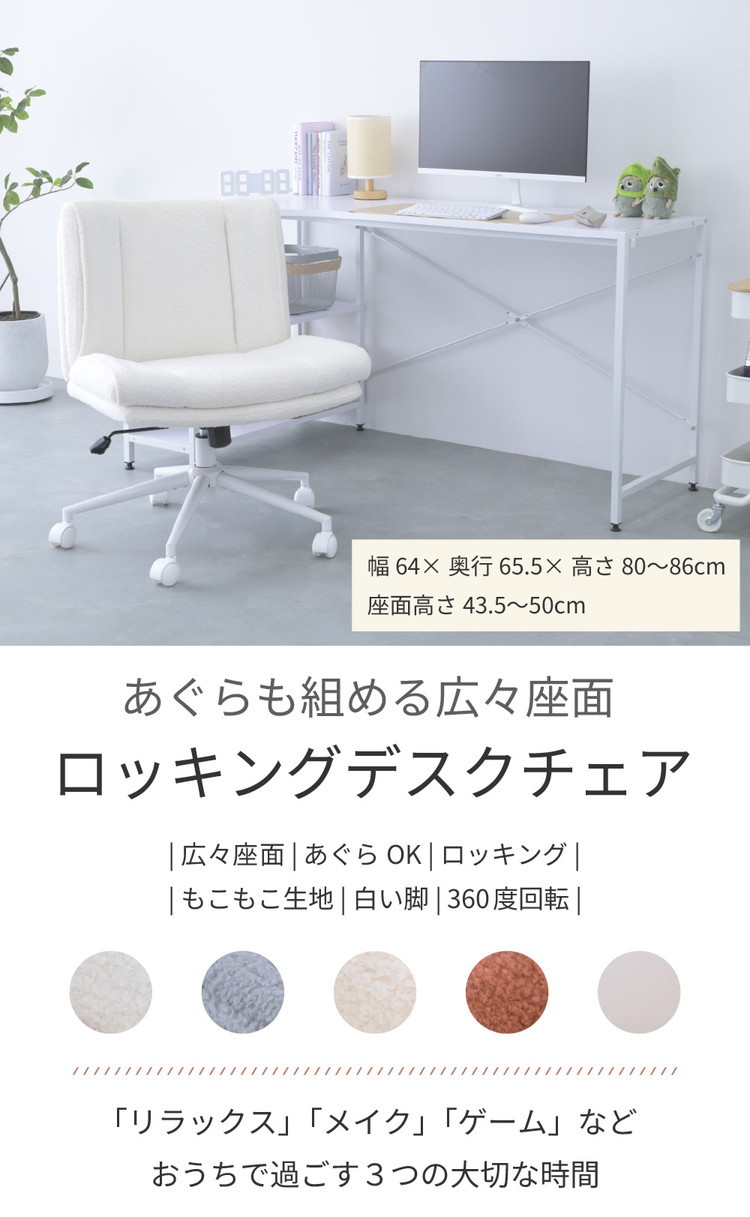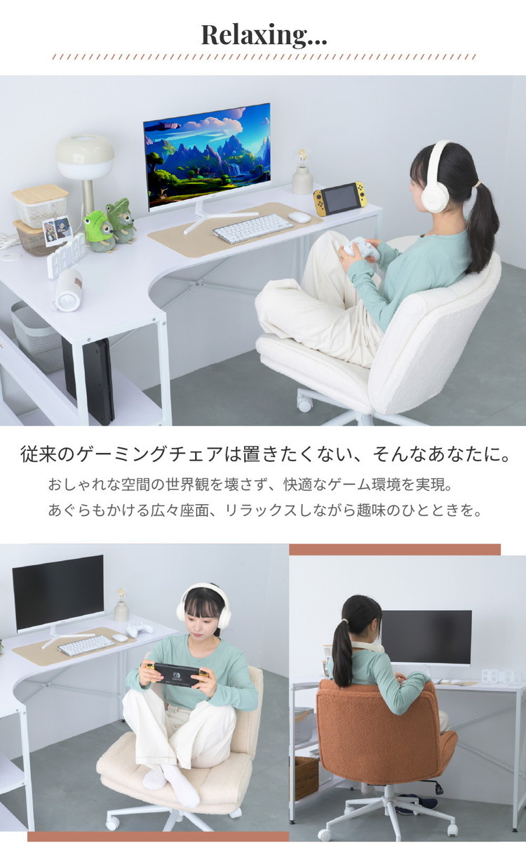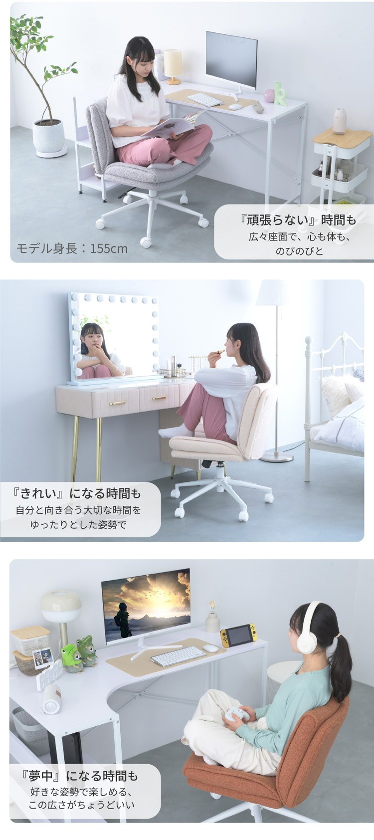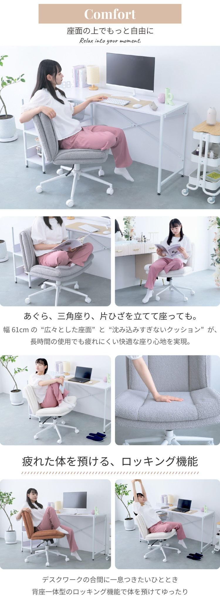 あぐらチェア OURLY アワリー 座面広々61cm ゆったり設計 デスクチェア ゲーミングチェア グレー