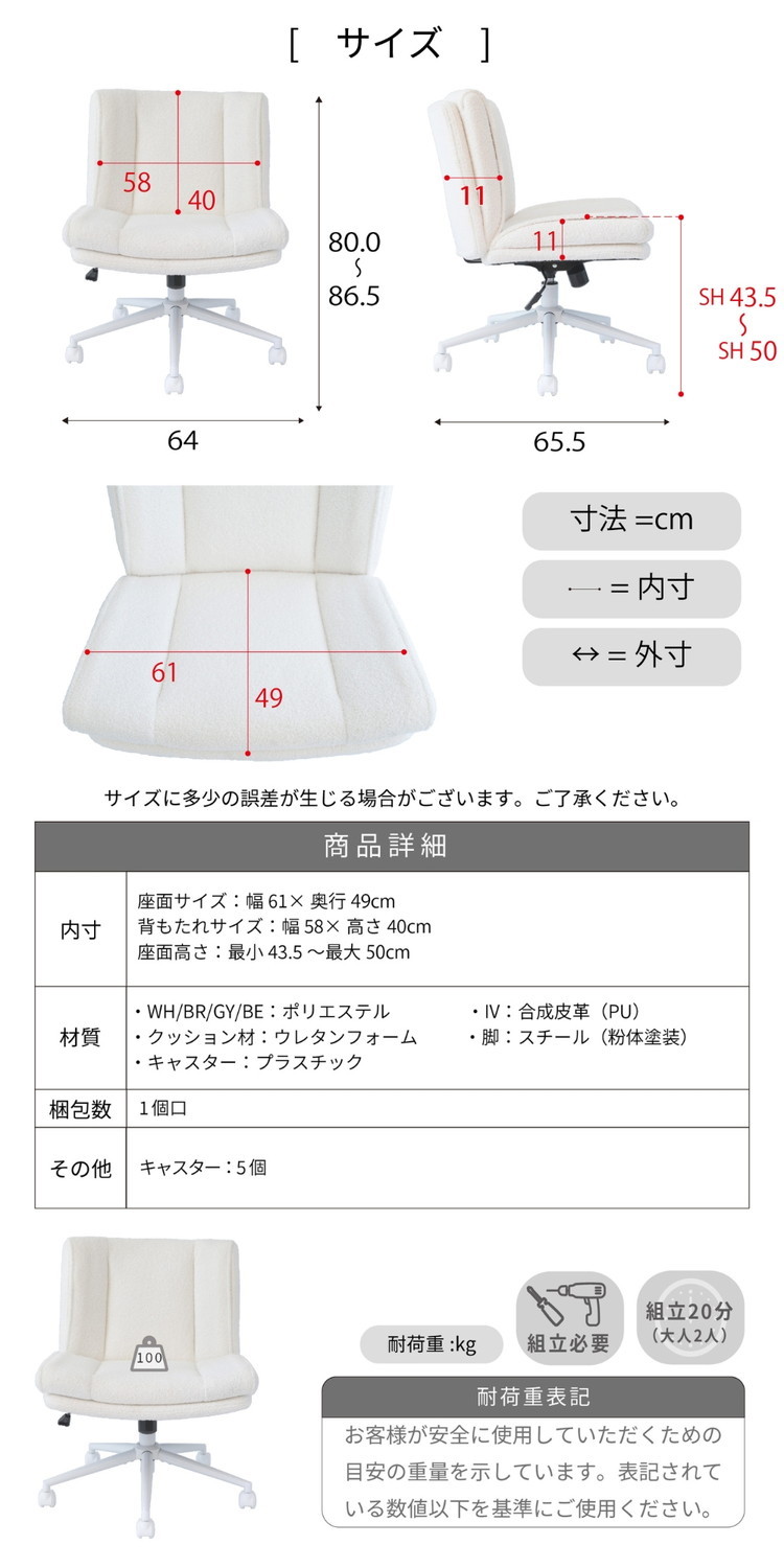 (座面)幅61×奥行49×座面高43.5cm~49.5cm