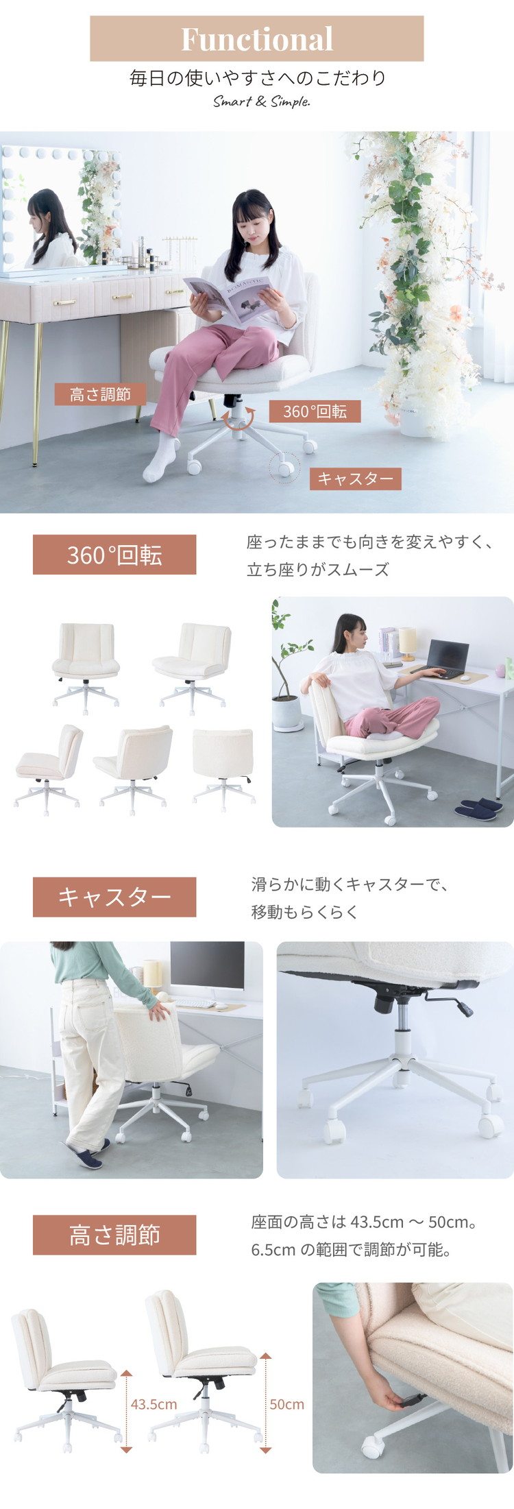 座面は360度回転し座ったままでも向きを変えやすく、立ち座りがスムーズ。