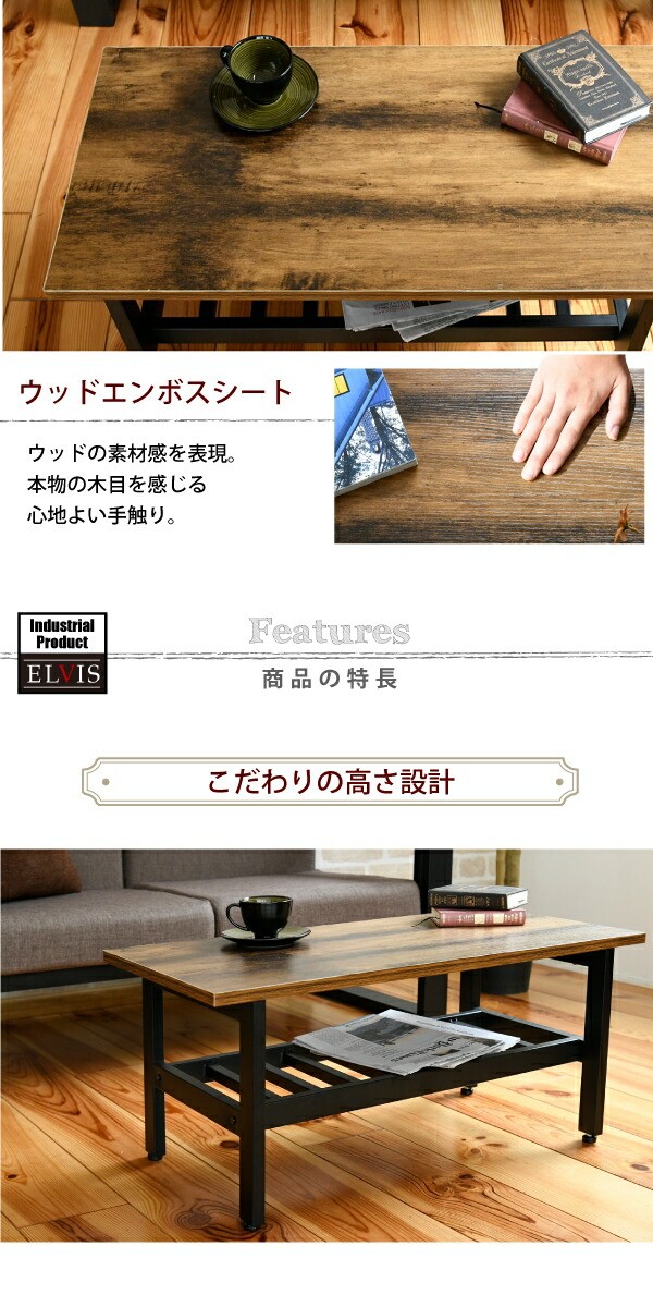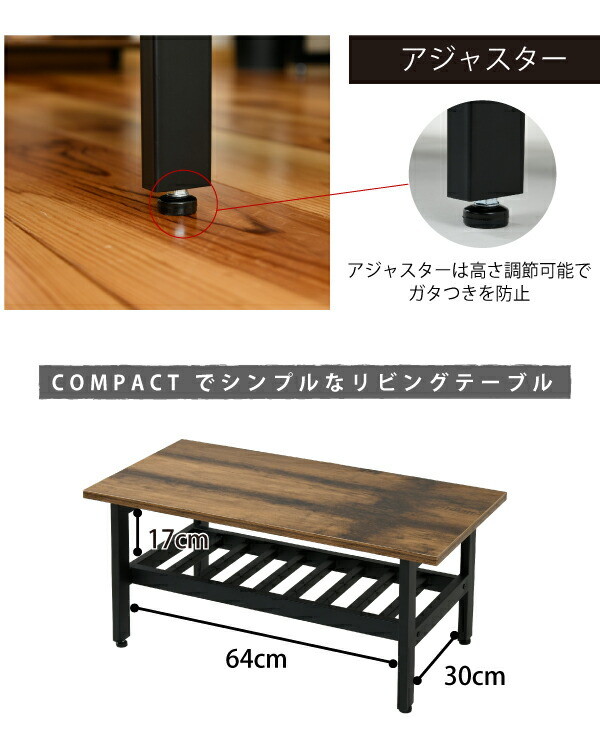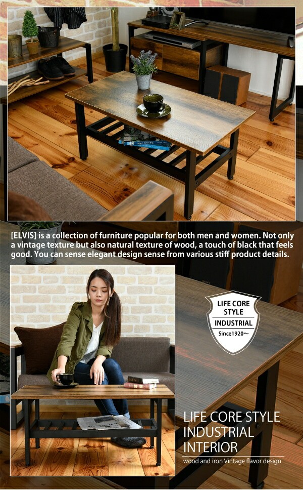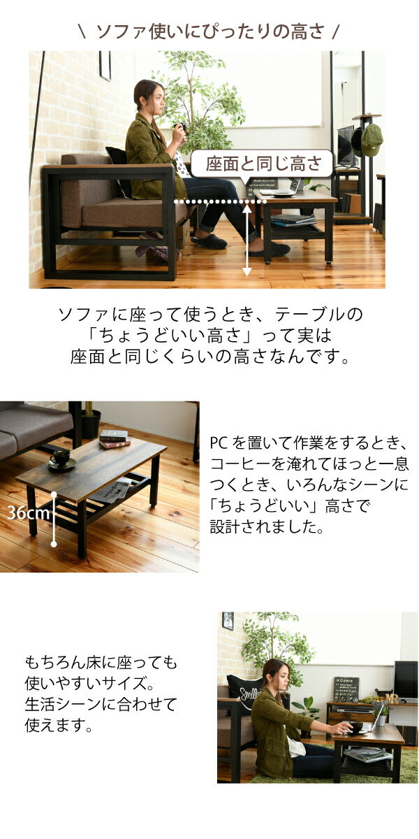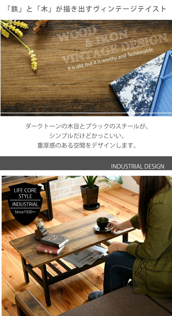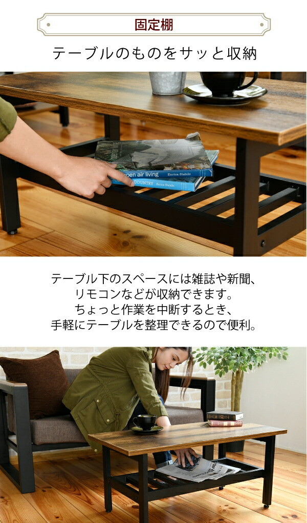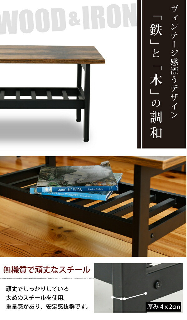 インダストリアル センターテーブル 幅80 奥行40 高さ36 リビングテーブル 棚 付き