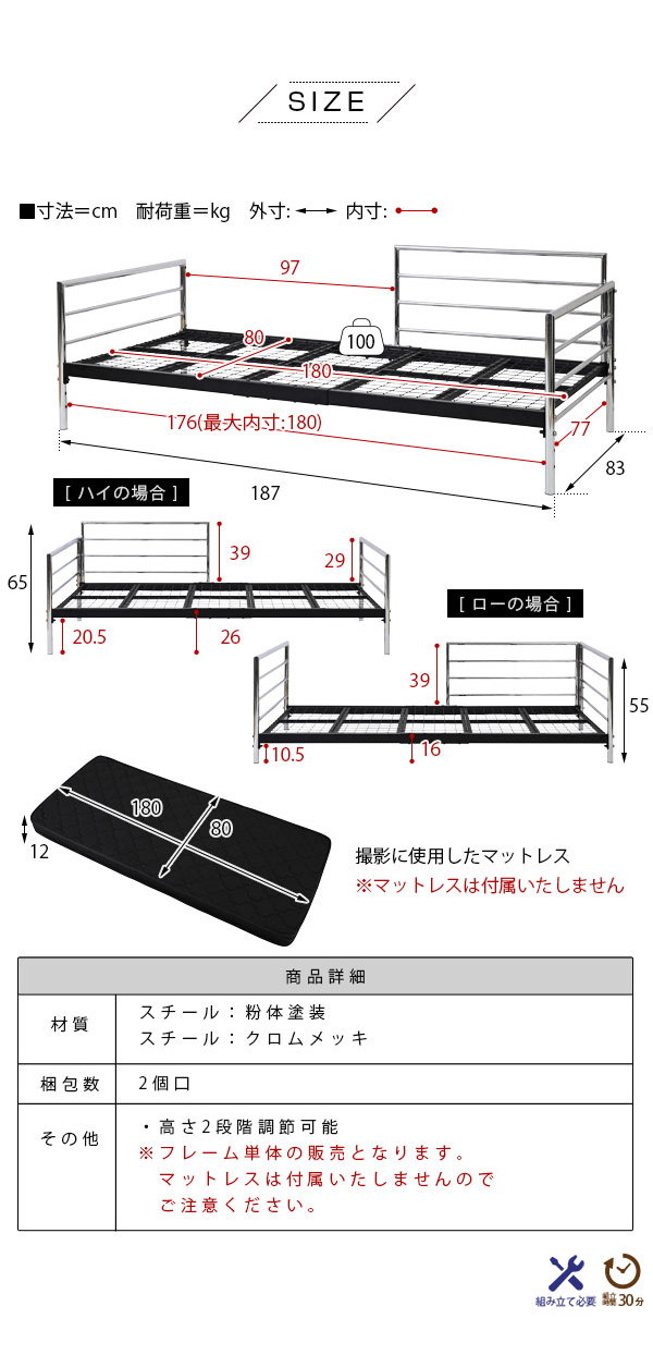※フレーム単体の販売となります。マットレスは付属いたしませんのでご注意ください。
