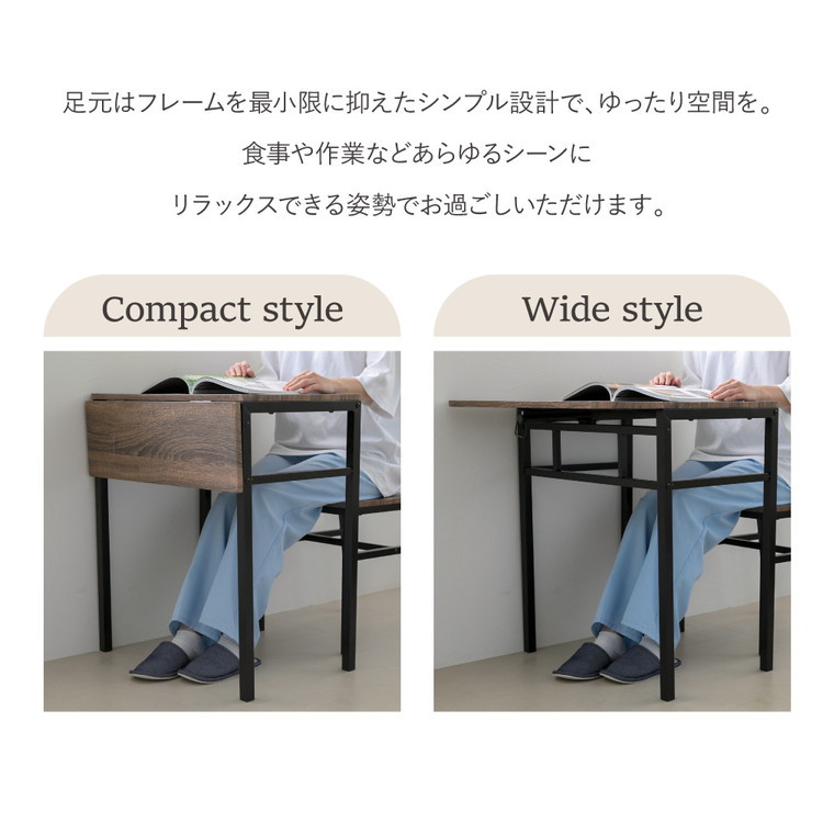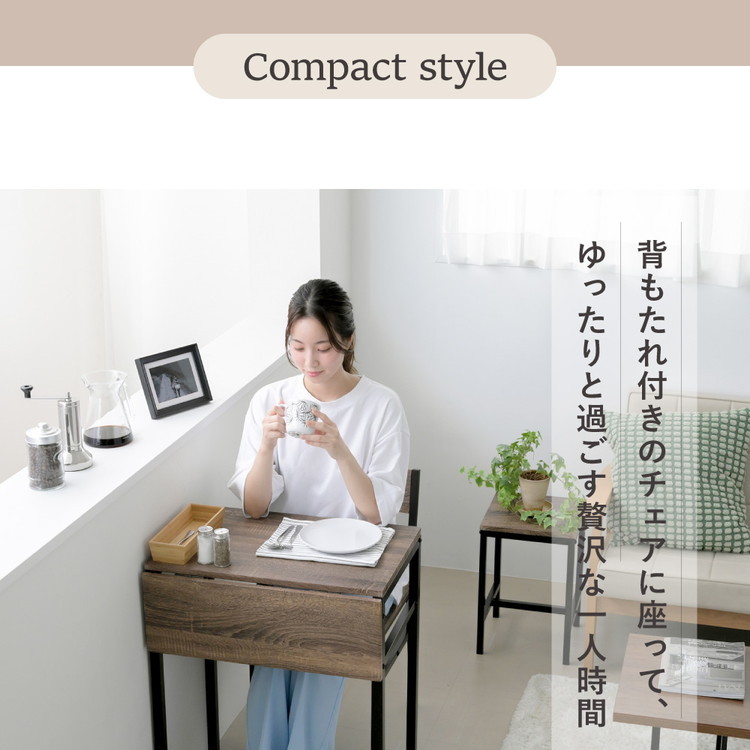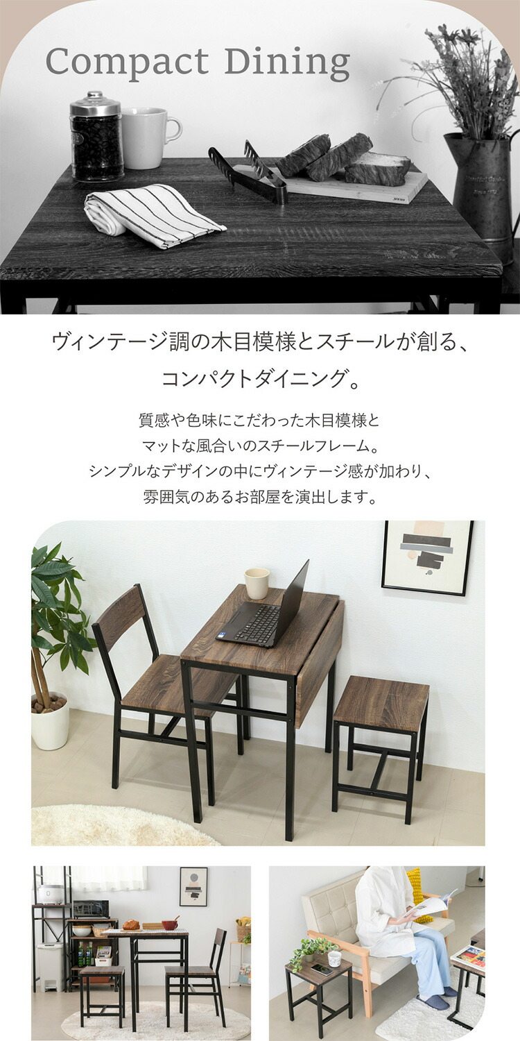 一人暮らしにぴったりなテーブルとチェア、スツールの3点が揃ったダイニングテーブルセット。一人使いはもちろん、来客があった時にも対応することができるので便利。バタフライ天板なのでシーンに合わせてデスク使いすることもできます。