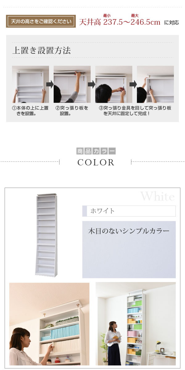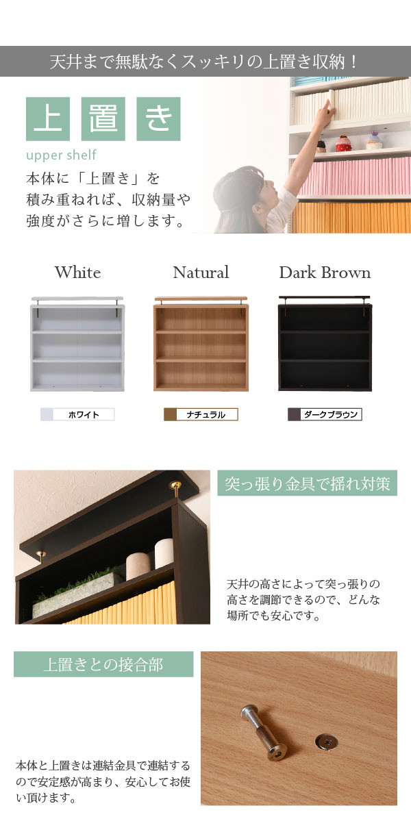 本体と上置きのセットで、本棚の上のデットスペースも有効活用。