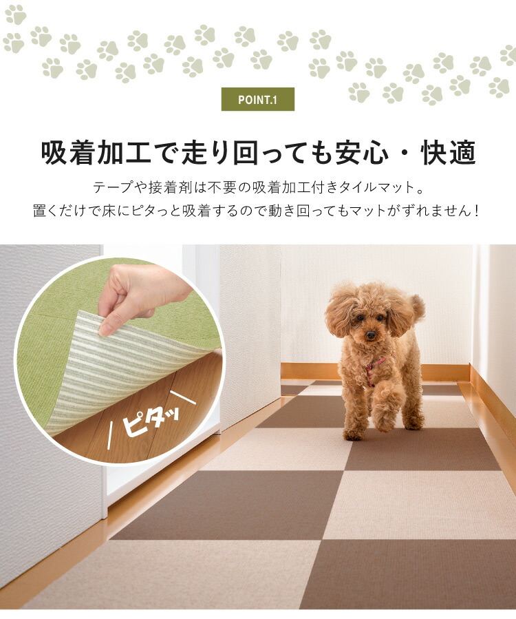 ●掃除機をかけても、裏面の吸着効果でめくれ上がることがないので、お掃除もラクラク!