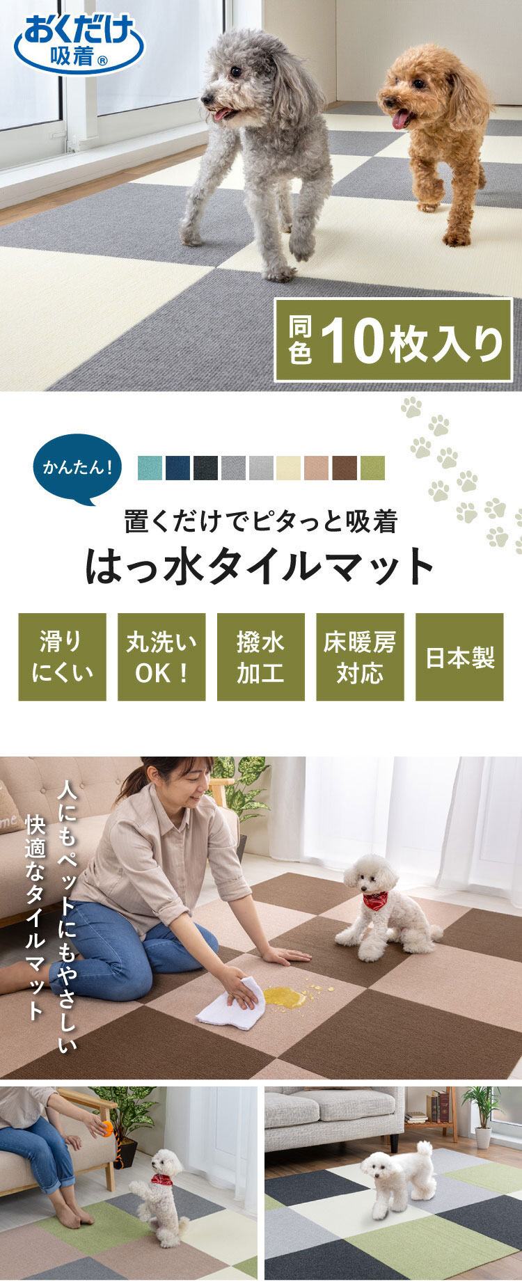 サンコー おくだけ吸着 ペットマット 日本製 10枚入り 洗える 床暖房対応 消臭 ずれない 45×45cm 厚さ4mm ブラウン