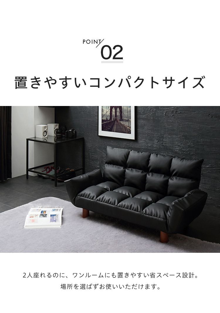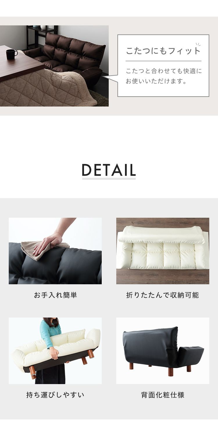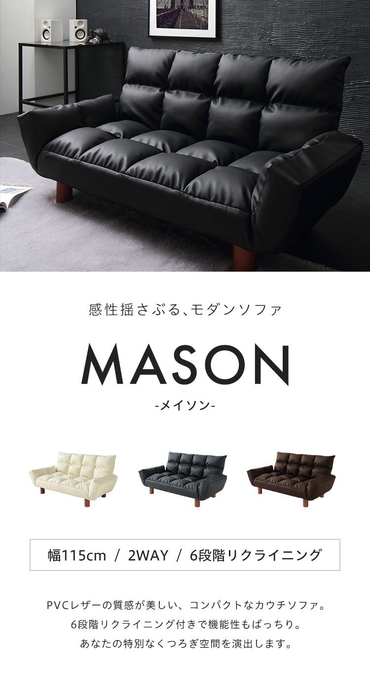 カウチソファ コンパクト 幅115cm 1人暮らし 6段階リクライニング 天然木 2WAY お手入れ簡単 PVCレザー ダークブラウン