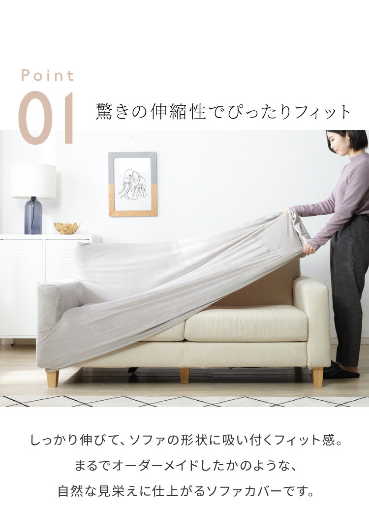 ソファーカバー ベロア調 3.5人掛け アイボリー