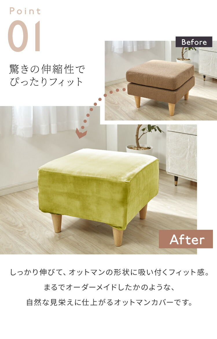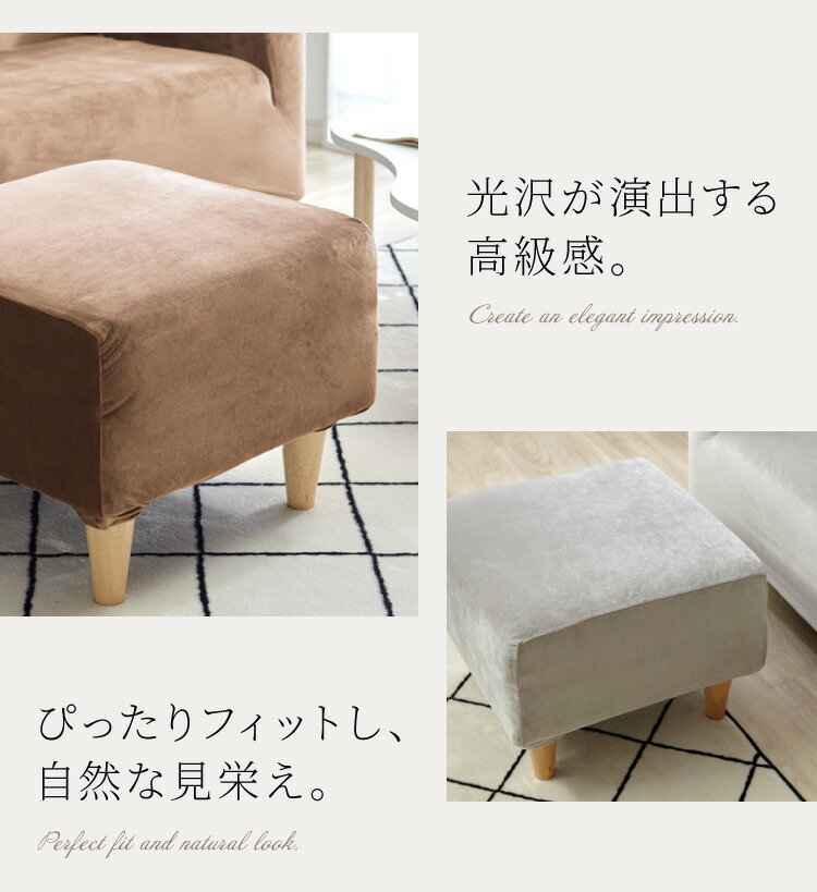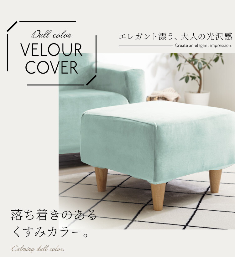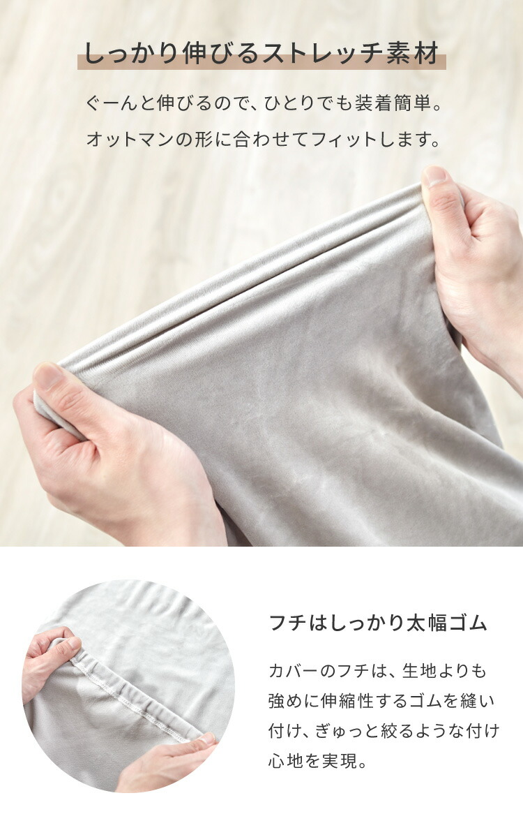 オットマンカバー ベロア調 M/Lサイズ スカイグレー L