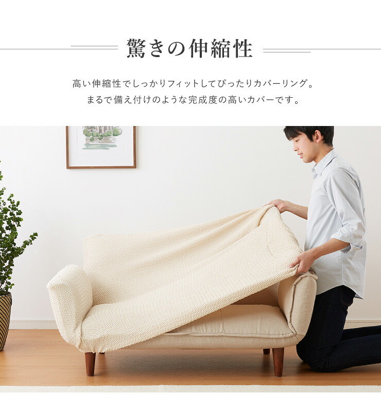ソファーカバー 2人掛け 肘付き リクライニングカウチソファ用 ウエーブ生地 洗える アイボリー