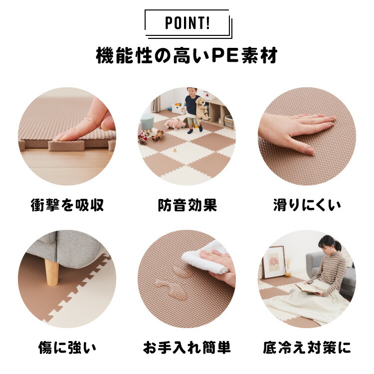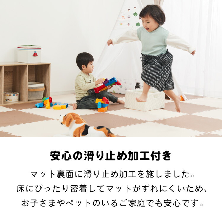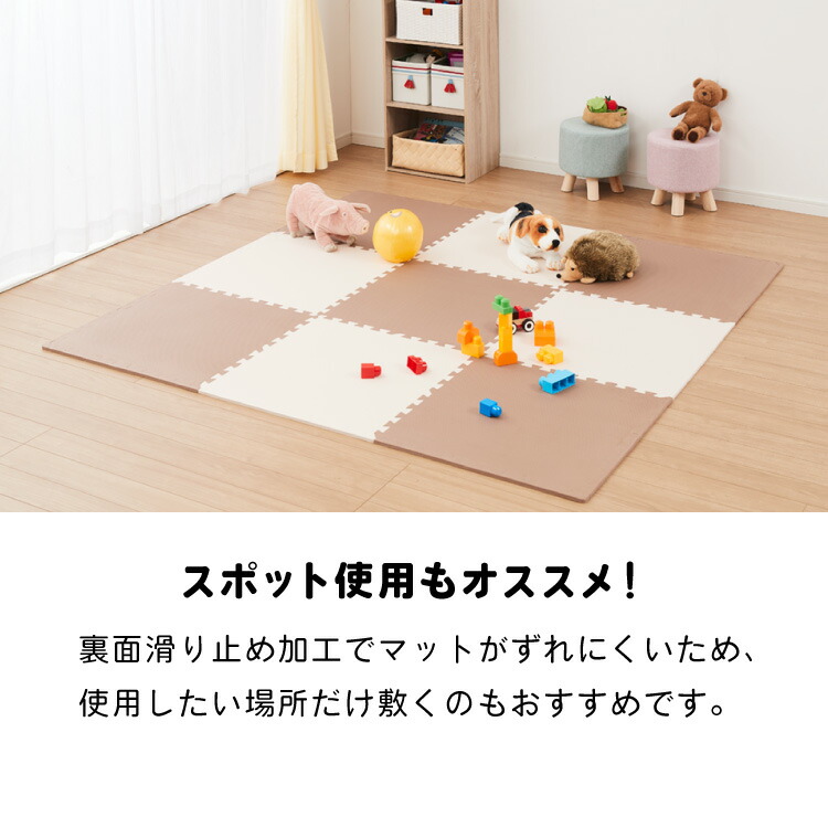 ・裏面に滑り止め加工付きでぴったり敷けるジョイントマットです。