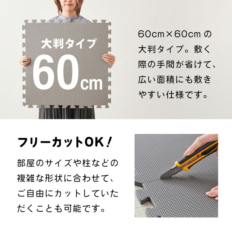 ・敷き詰めやすい大判タイプで設置の手間がかかりません。