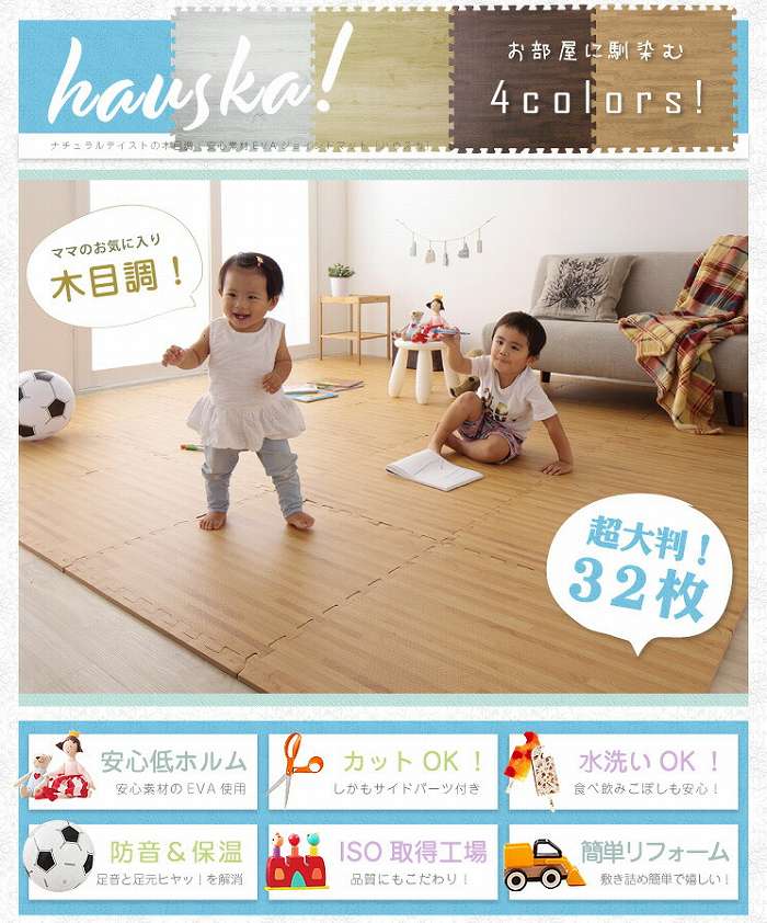ジョイントマット 木目調 大判 60cm 32枚 ジョイントマット プレイマット マット
