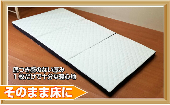 沈み込みが少ないので、良い寝姿勢で寝返りもスムーズにできます。三つ折りタイプでコンパクトに収納可能です。