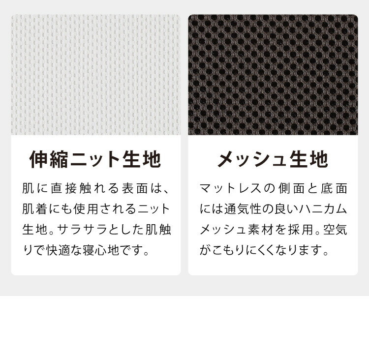 適度な硬さと優れた反発性で安定した寝心地を実現します。中材には耐久性に優れた『高密度高反発ウレタンフォーム』を使用。