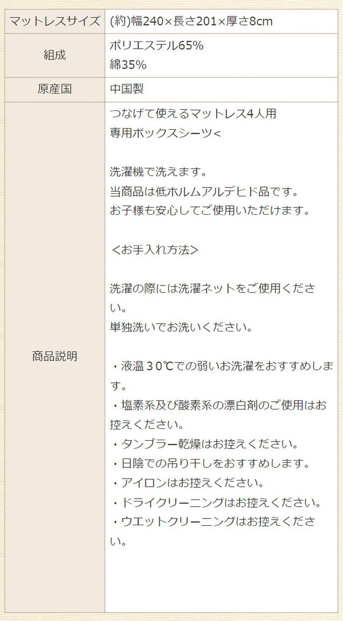 ファミリータイプマットレス 専用ボックスシーツ 4人用