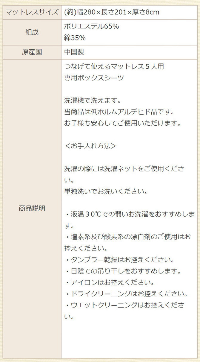 ファミリータイプマットレス 専用ボックスシーツ 5人用