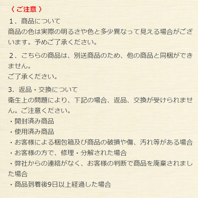 イメージ違いによる返品・交換は承りかねます。