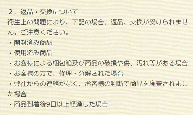 ※インターネット通販にはクーリングオフ制度は適応されません。