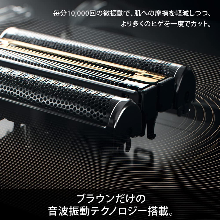 ブラウン独自の音波振動テクノロジーで肌との摩擦を軽減し一度で剃り切ります。