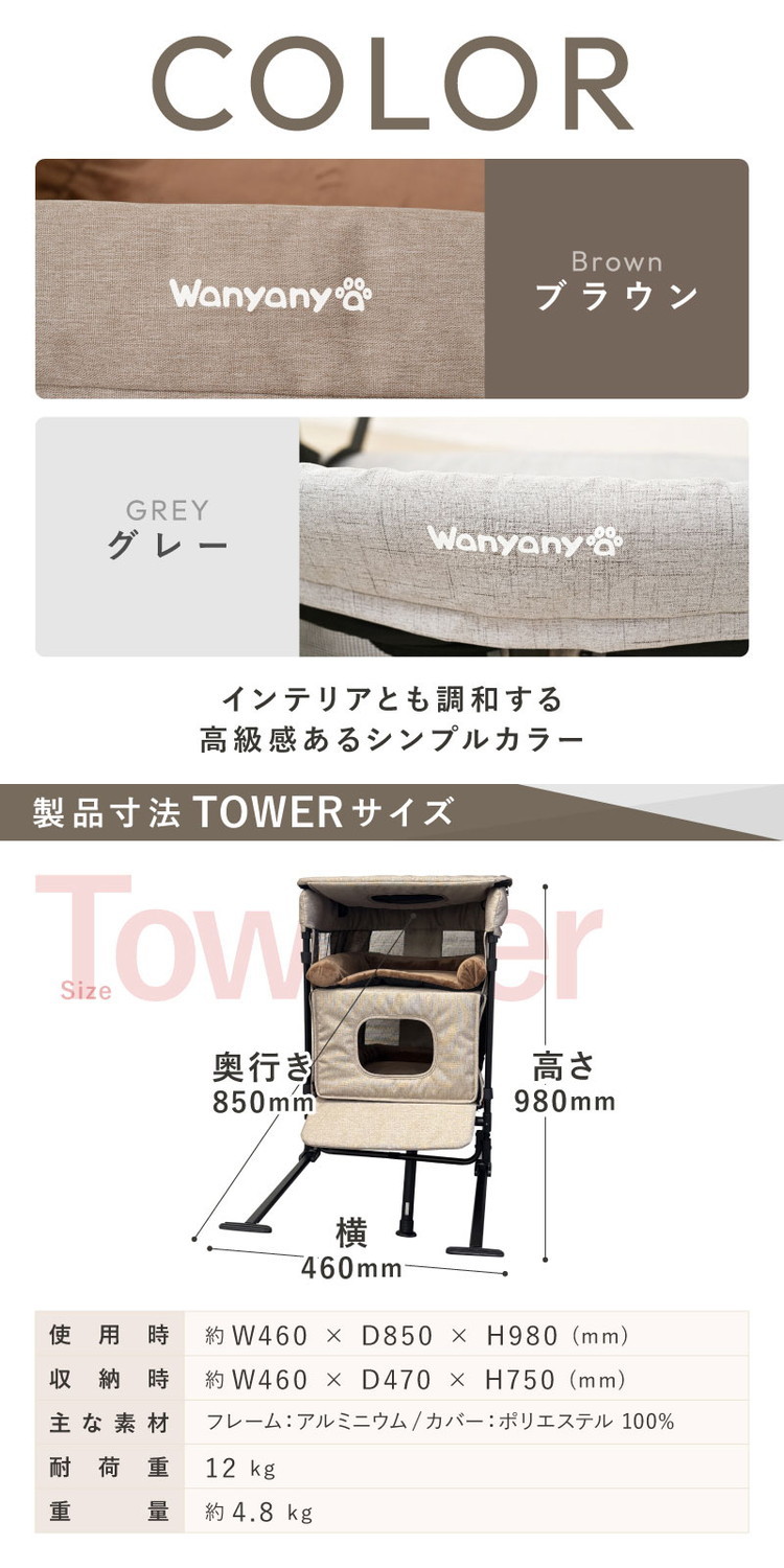 wanyanya ペットと添い寝できる ベッド タワータイプ 2段 添い寝ベッド 取り付け簡単 洗える 折りたたみ GUUUSLEEP グレー