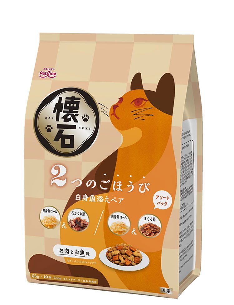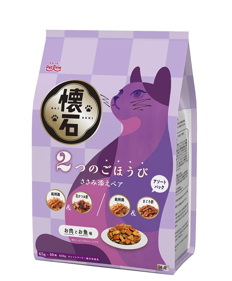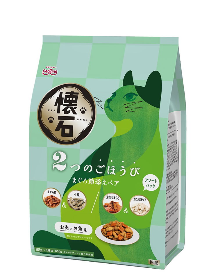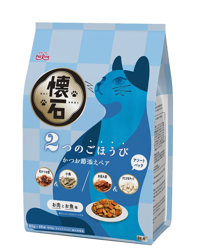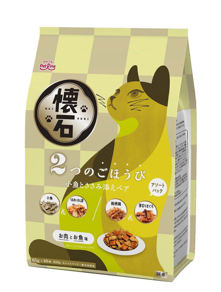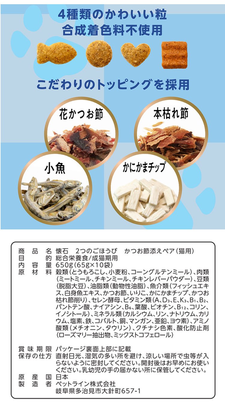 ペットライン 懐石 2つのごほうび フレーバータイプ 650g 小分けパック 猫用 猫 キャットフード ドライ かつお節添え