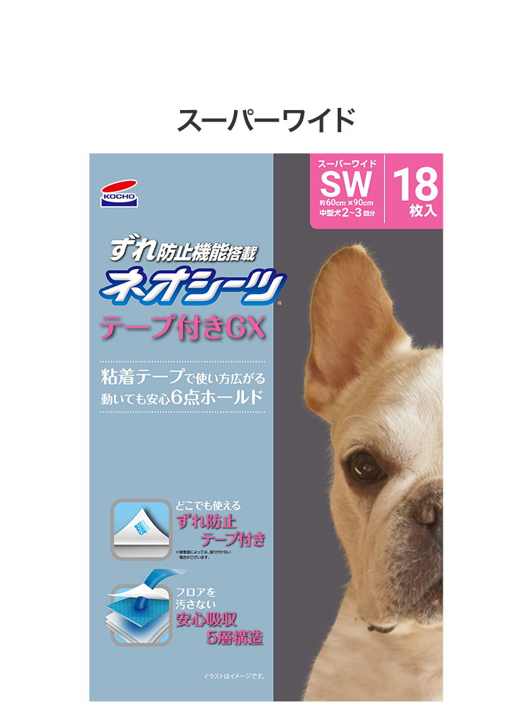 【2個セット】 コーチョー ネオシーツ ずれ防止 GX 厚型 ずれ防止 テープ付 壁に貼れる ワイド 40枚入 スーパーワイド 18枚入 ペットシーツ ワイド