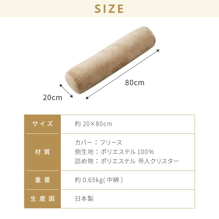 抱き枕・足枕・背当てなど多用途に使えるボルスターピローです。