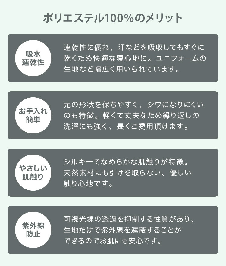 ポリコットン生地なので、しわになりにくく、乾きも早い