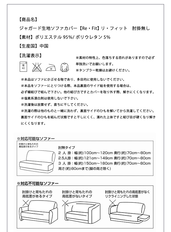 ソファーカバー 2.5人掛け 肘なし ジャガード ブラック