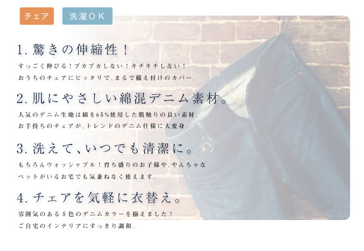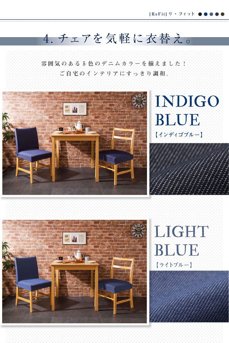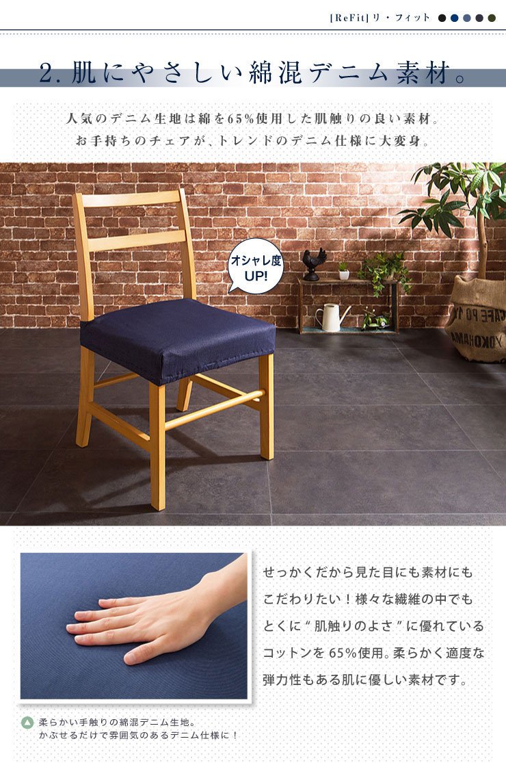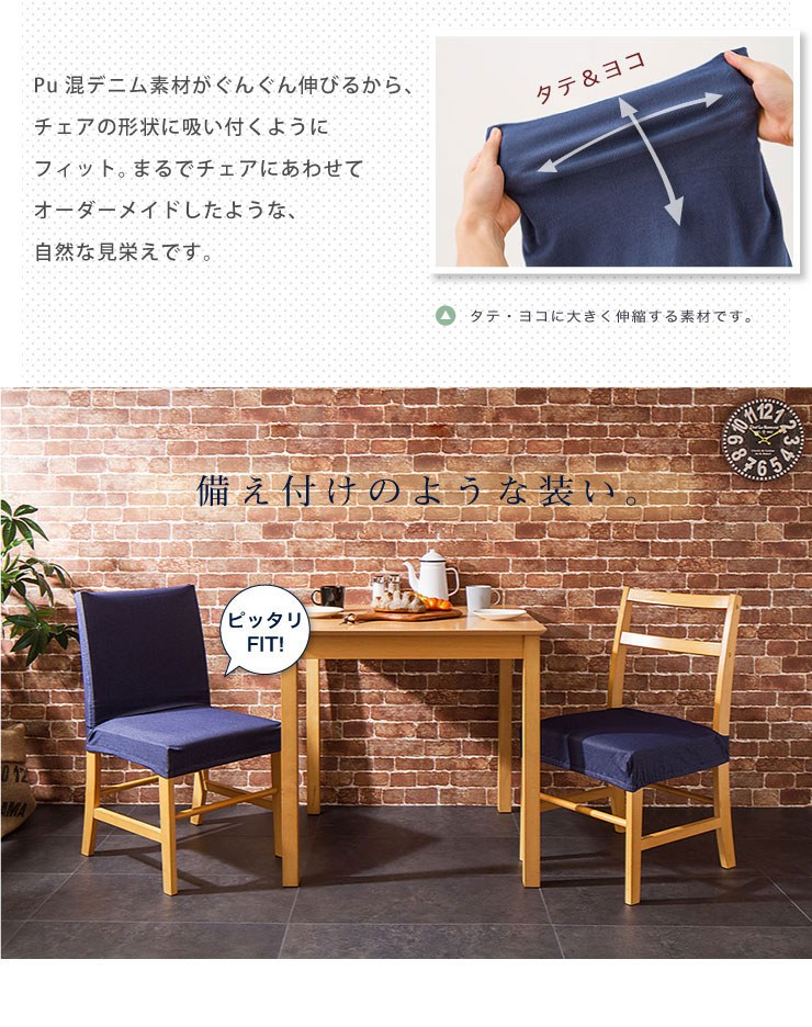 ニットデニム 座面カバー 2WAY 同色2枚組 デニム デニム生地 チェアカバー フィット カバー 洗える ライトブルー