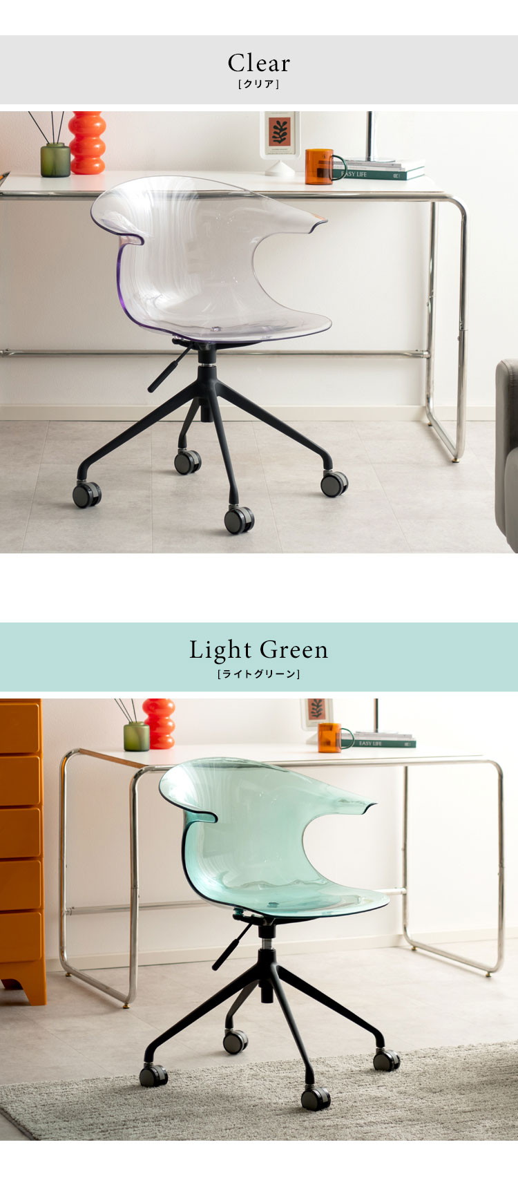 不透明で白脚のクリーム、グリーン、透明で黒脚のクリア、ライトグリーン、アンバー、ブラックの6カラーをご用意。お好みでお選びいただけます。