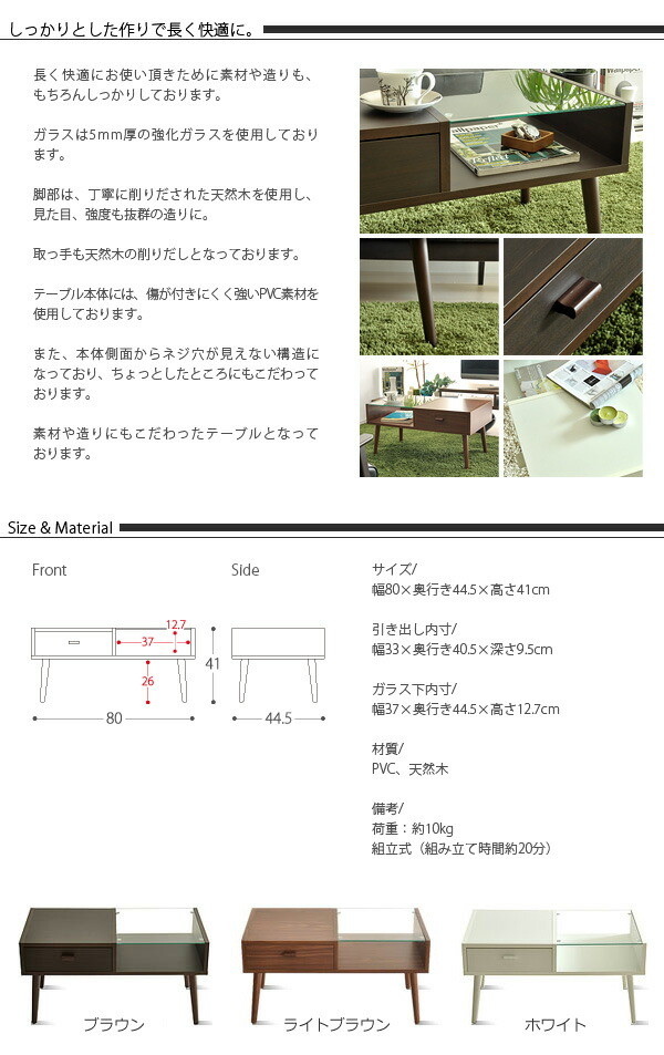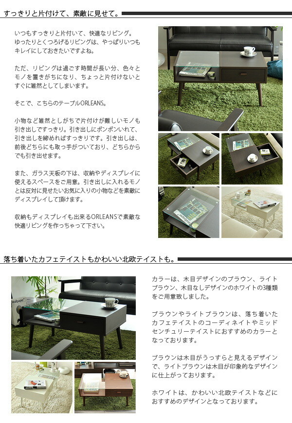 引き出し付きテーブル ORLEANS 〔オリンズ〕 センターテーブル 北欧 引出し付き ダークブラウン