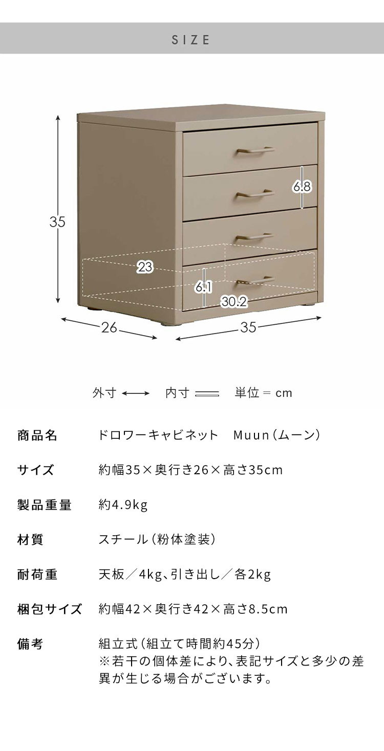 ドロワーキャビネット Muun ムーン 幅35cm 高さ35cm 奥行26cm 収納ボックス 収納 引き出し ベージュ
