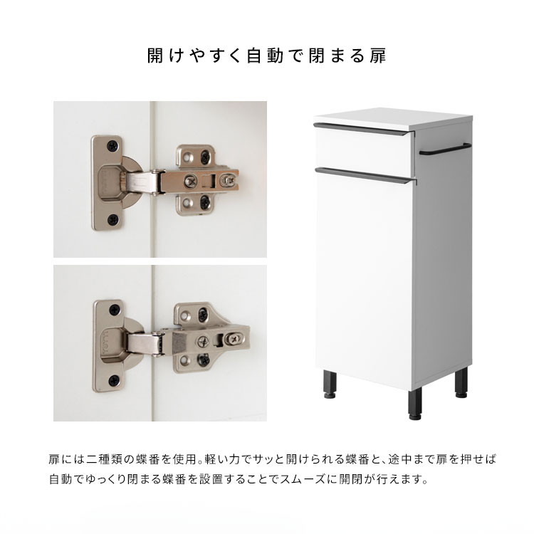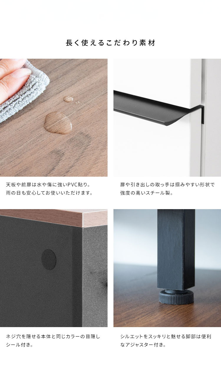 幅33cmとスリムデザインで、玄関など限られたスペースにも置けて、扉付きのデザインで生活感を隠せます。
