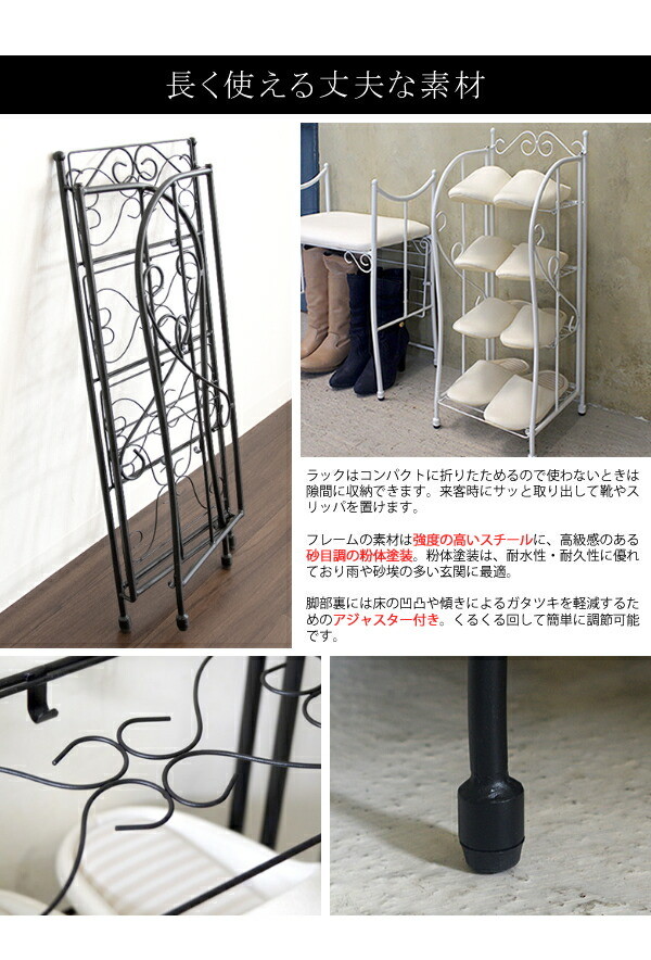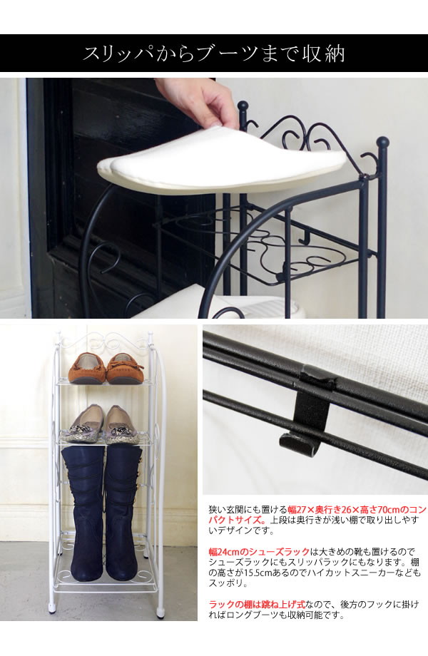 スパニッシュテイストで細い曲線のラインアートが可愛い『DEL SOL(デル・ソル)』シリーズの玄関ラック。スリッパラックやシューズラックとしてお使いいただけます。
