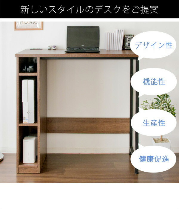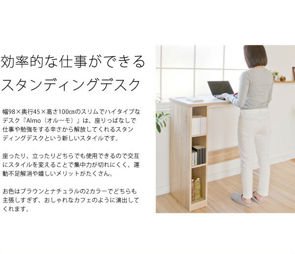スタンディングデスク Almo(オルーモ) 高さ100cm コンセント2個口 ハイタイプ デスク 収納棚付き デスク ブラウン