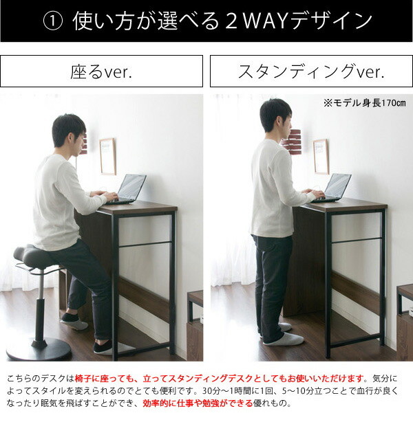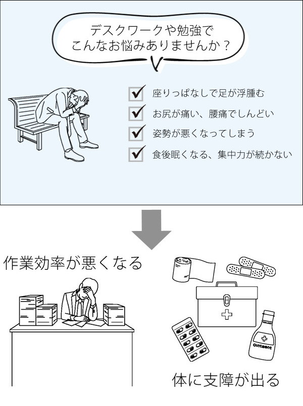 座ったり、立ったりどちらでも使用できるので交互にスタイルを変えることで集中力が切れにくく、運動不足解消や嬉しいメリットがたくさん。