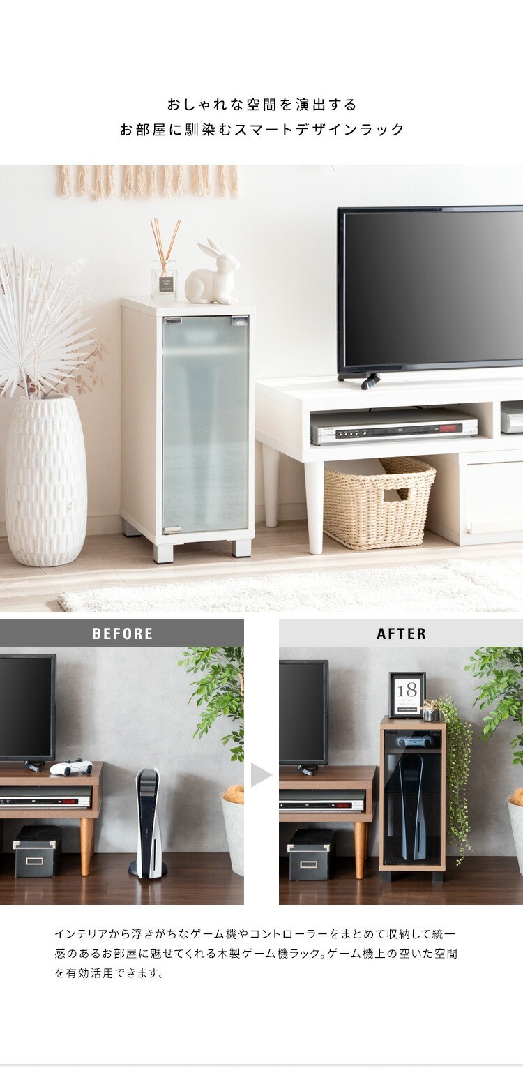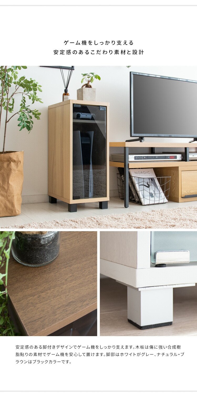 小物がディスプレイできる天板やコントローラの収納棚がありゲーム機周りをすっきり。