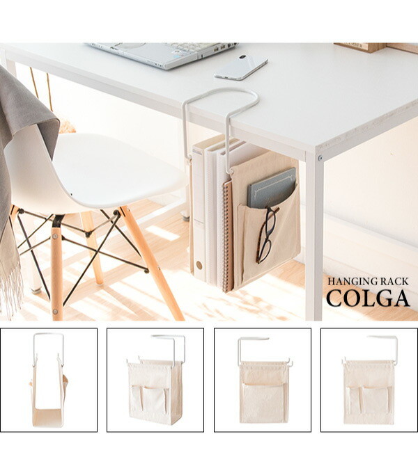 ダイニングテーブルやデスクに引っ掛けるだけで新聞や雑誌が収納できる帆布ケースのハンギングラック『COLGA(コルガ)』。