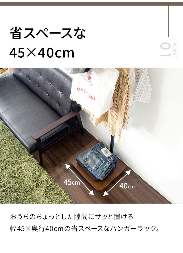 お部屋の隅や隙間に置けるコンパクトな幅45×奥行40cmのスリムハンガーラック『TORRE(トーレ)』。