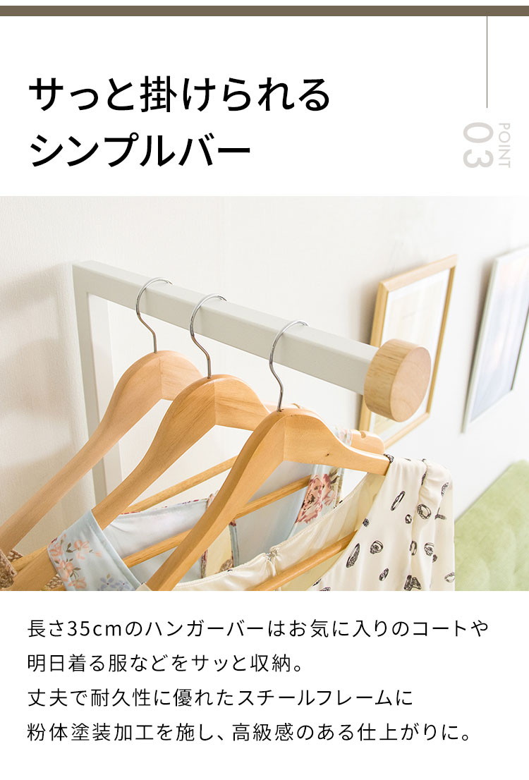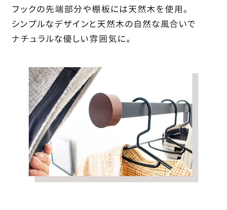 シンプルな括弧型のデザインは圧迫感もなく玄関ハンガーや来客時のコートハンガーにもピッタリ。