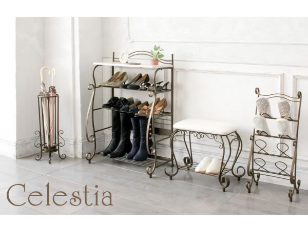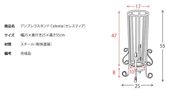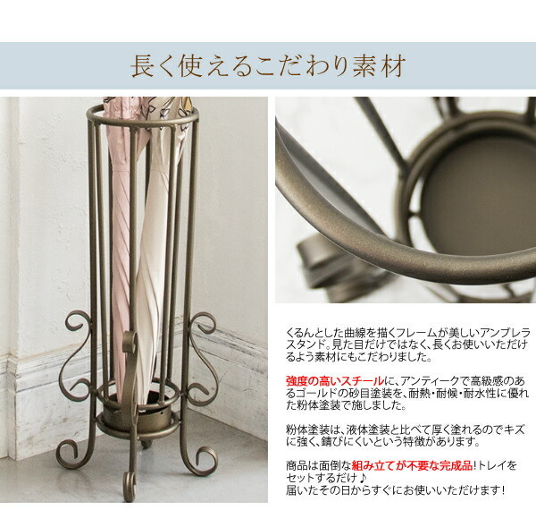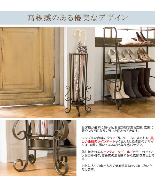 曲線をあしらった装飾の洗練されたデザイン、心地よさを醸し出すアンティークゴールドが人気の『Celestia(セレスティア)』シリーズの、アンブレラスタンド。
