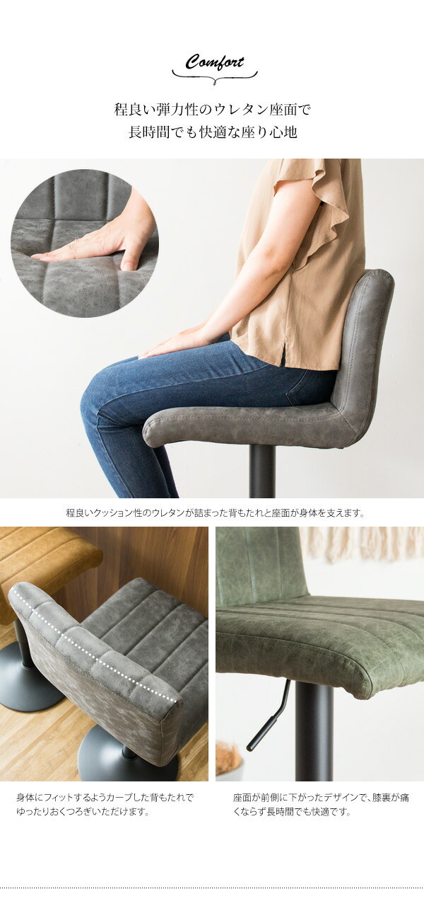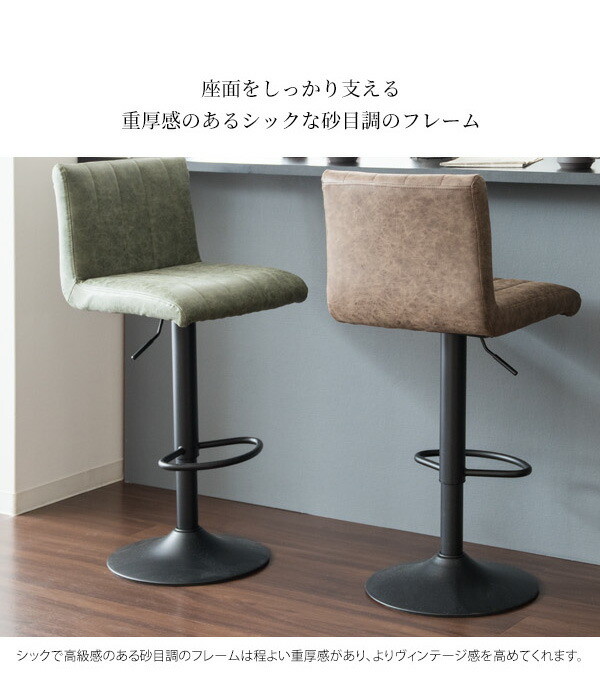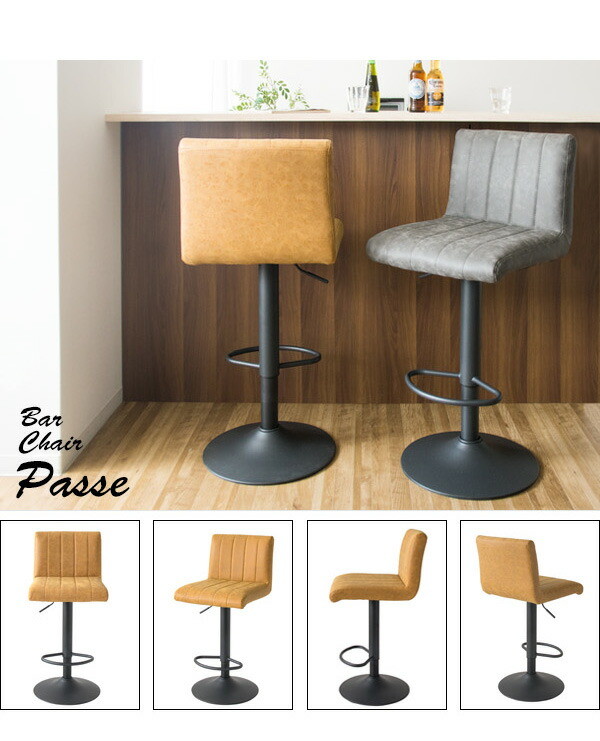 カウンターチェア バーチェア Passe パッセ 背もたれ付き 昇降チェア ヴィンテージデザイン ェアー カフェ カウンター ブラウン